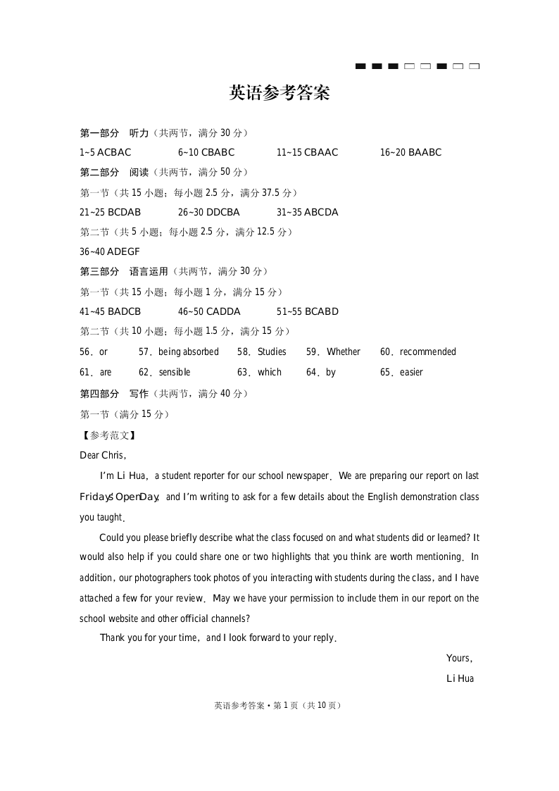 巴蜀中学2026届高考适应性月考卷(七)英语答案.pdf