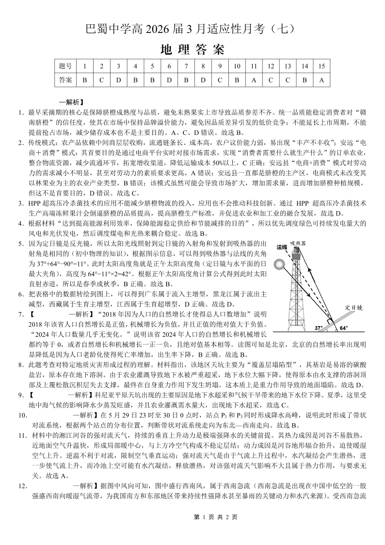 巴蜀中学2026届高考适应性月考卷(七)地理答案.pdf