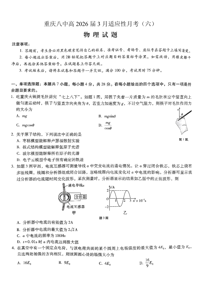重庆市第八中学2026届高考适应性月考卷(六)物理.pdf