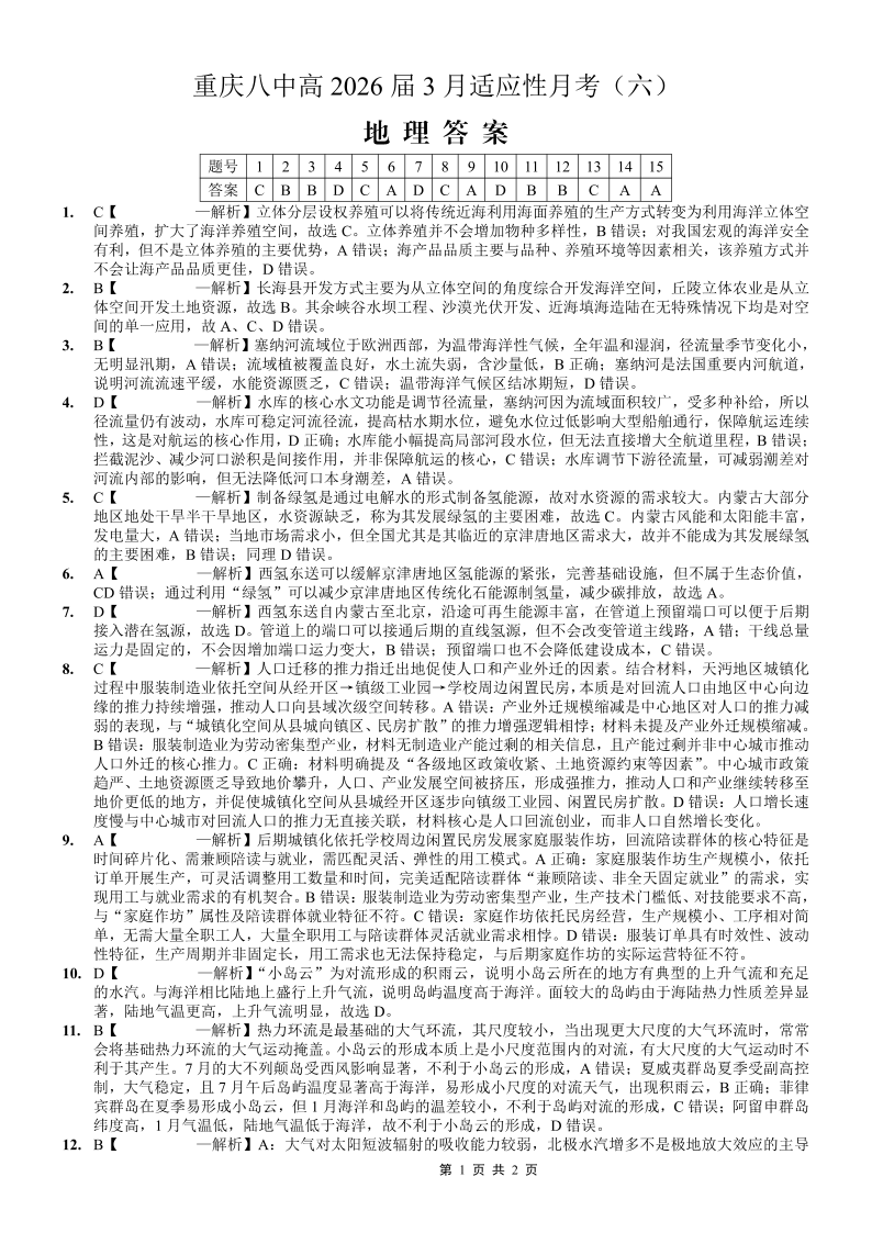 重庆市第八中学2026届高考适应性月考卷(六)地理答案.pdf