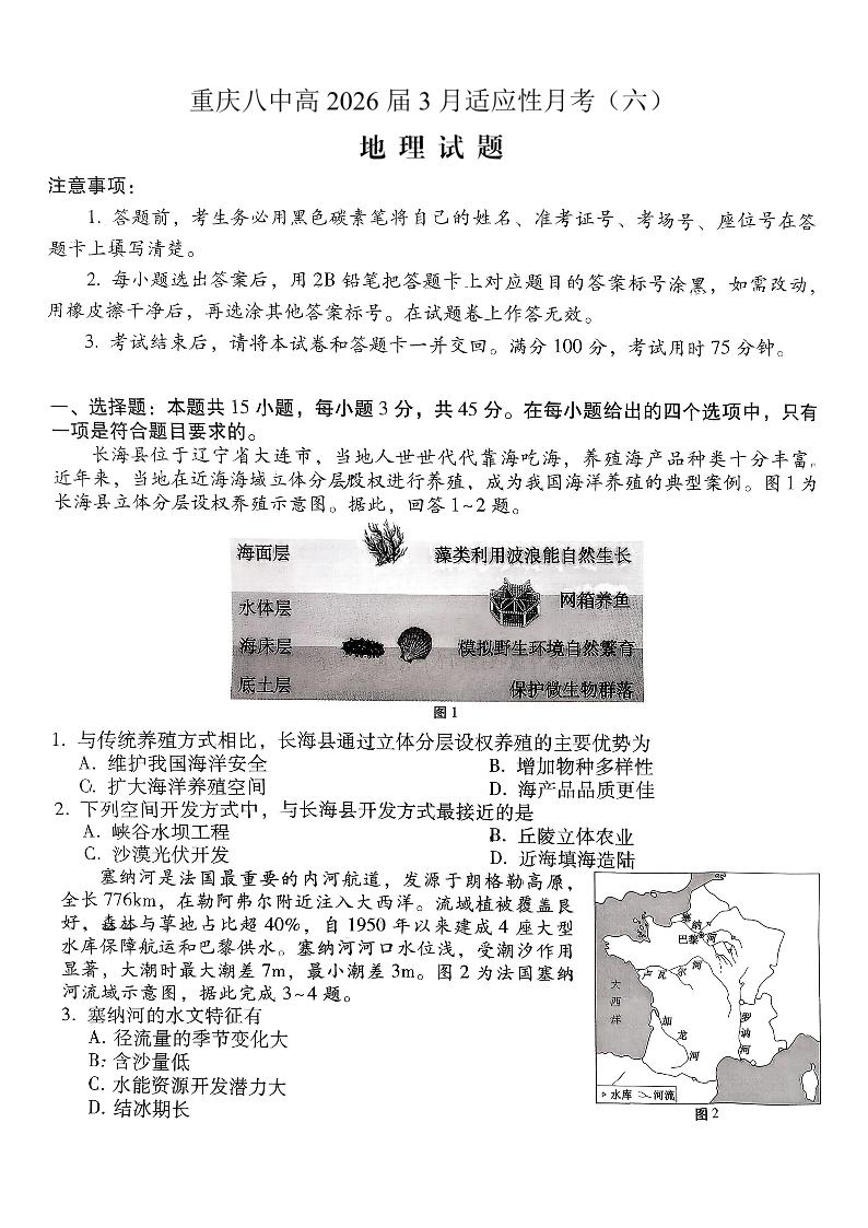 重庆市第八中学2026届高考适应性月考卷(六)地理.pdf