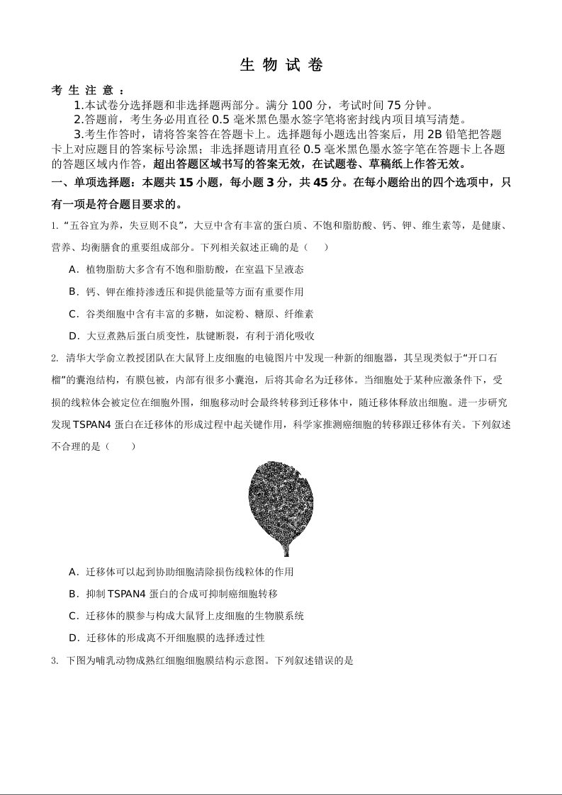 安徽铜陵市2026届高三下学期第一次质检 生物.docx