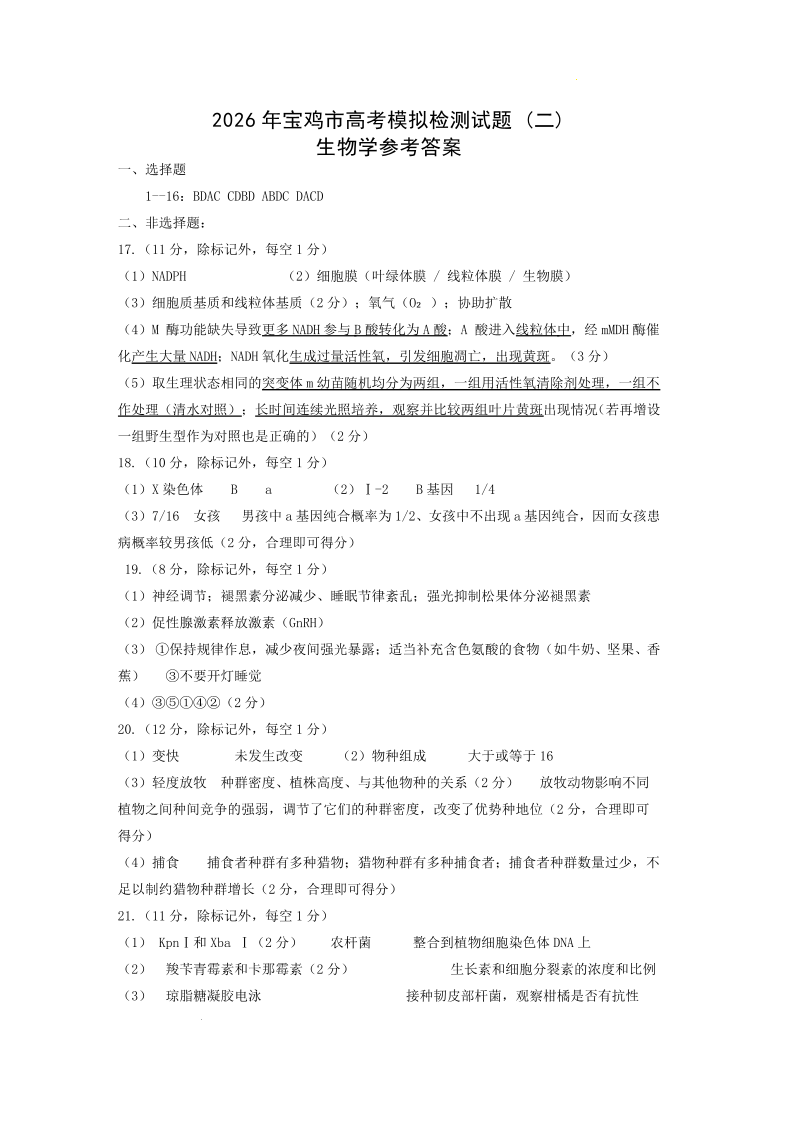 2026年宝鸡市高考模拟检测试题(二)生物答案.pdf