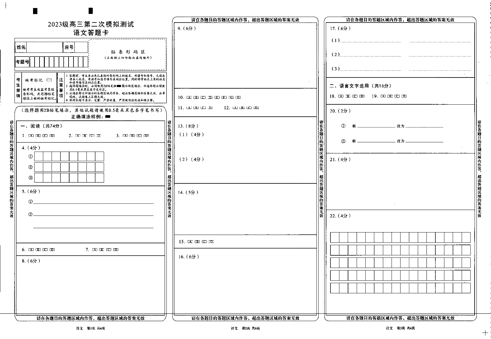 四川省成都市2023级高三第二次模拟测试 语文答题卡.pdf