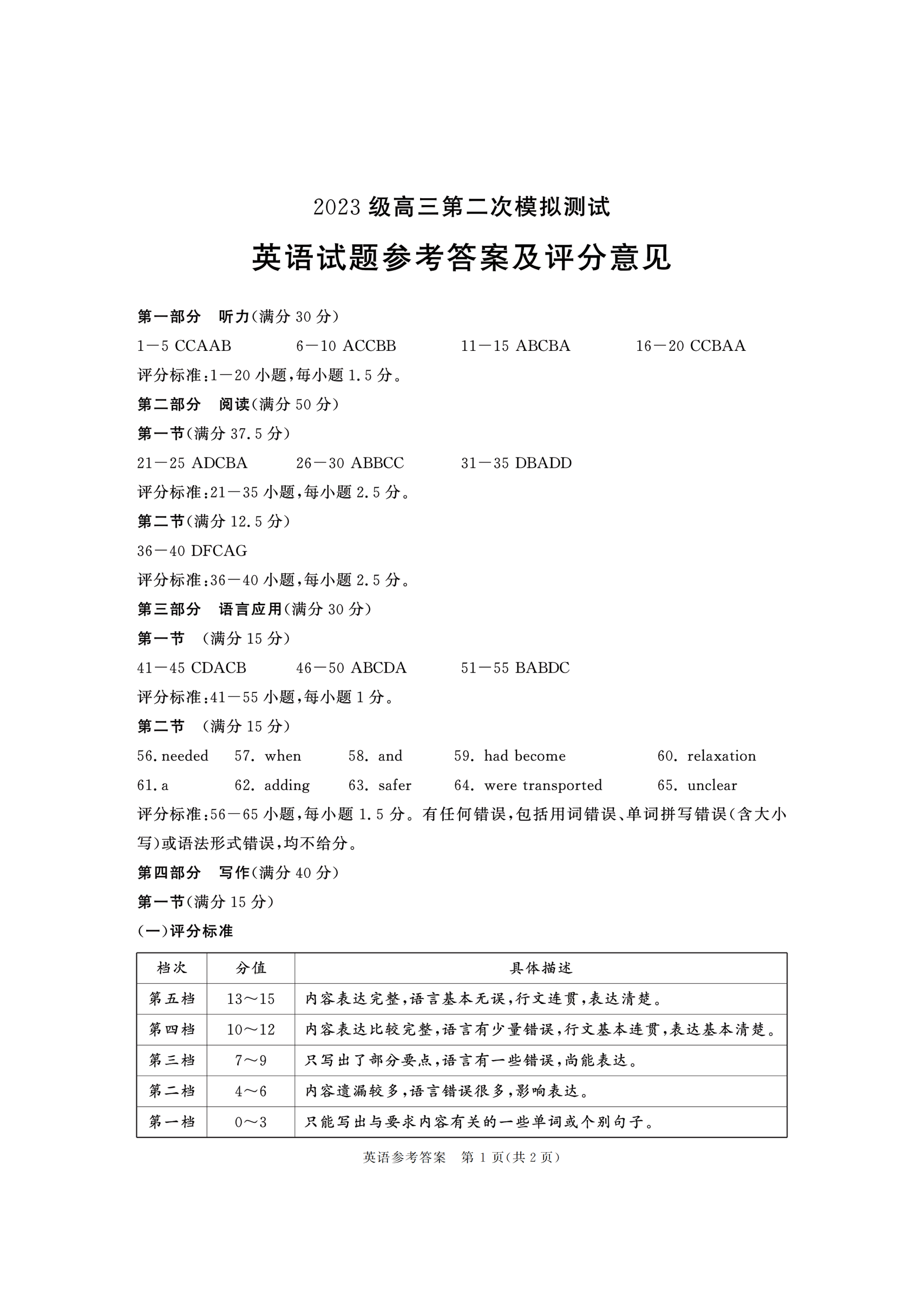 四川省成都市2023级高三第二次模拟测试 英语答案.pdf