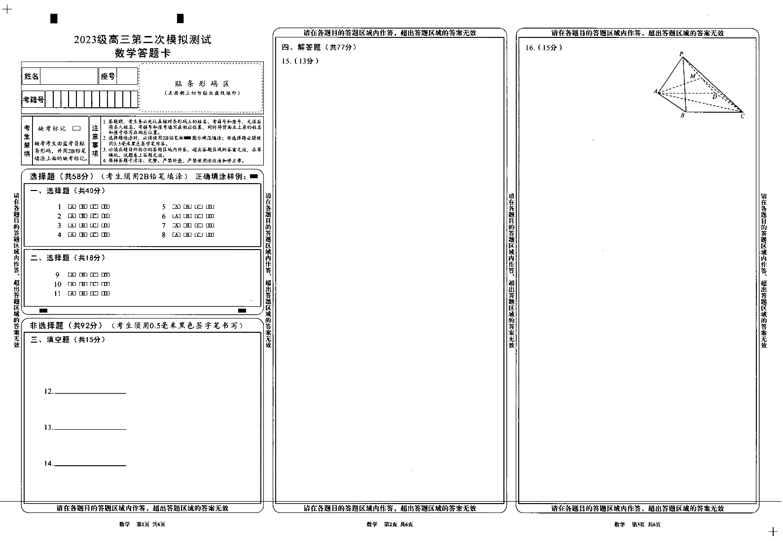 四川省成都市2023级高三第二次模拟测试 数学答题卡.pdf
