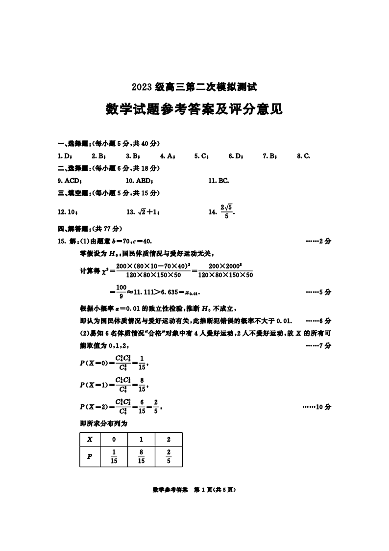 四川省成都市2023级高三第二次模拟测试 数学答案.pdf