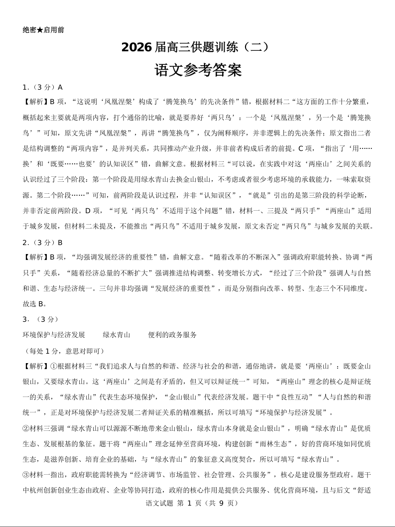 2026届高三供题训练(二)语文参考答案.doc