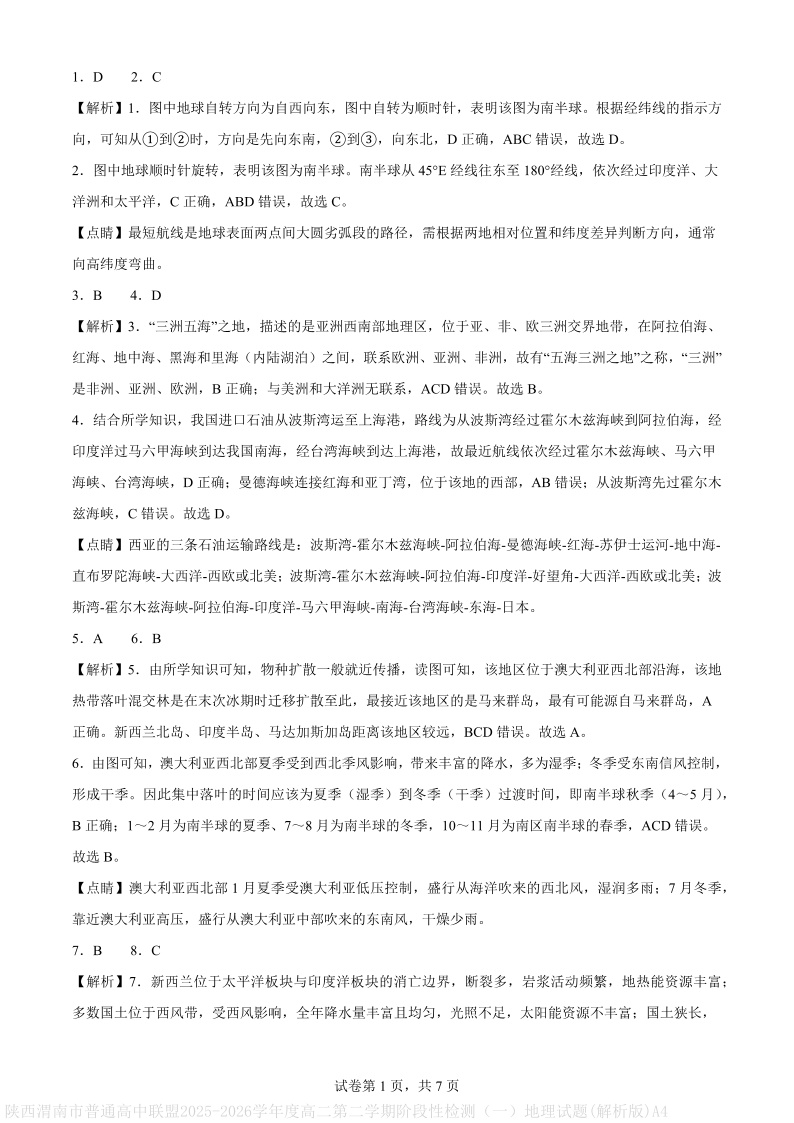 陕西省渭南市普通高中联盟2025-2026学年高二第二学期阶段性检测(一)地理答案.pdf