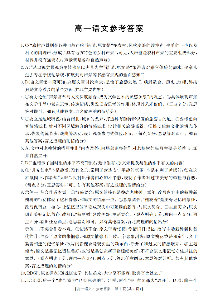 云南省2025-2026学年高一下学期3月开学联考 语文答案.pdf