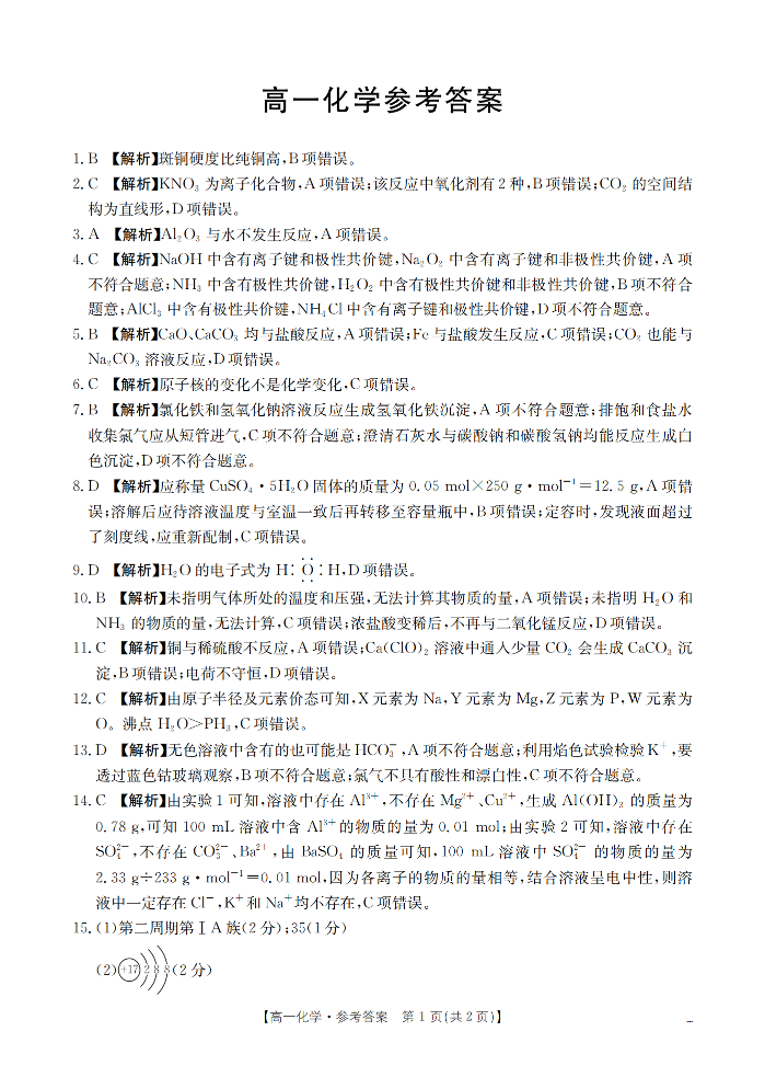 云南省2025-2026学年高一下学期3月开学联考 化学答案.pdf