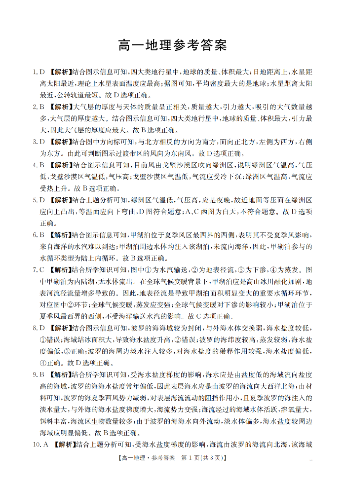 云南省2025-2026学年高一下学期3月开学联考 地理答案.pdf