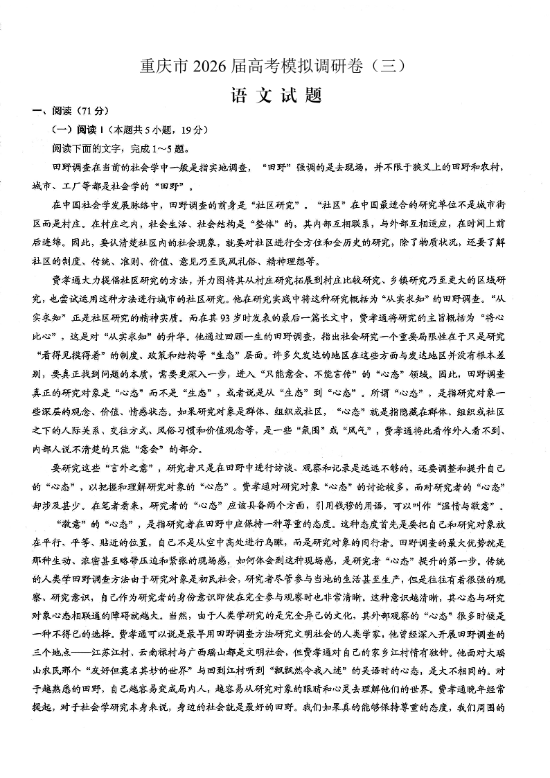 重庆市2026年普通高等学校招生全国统一考试康德调研(三)语文试题(含答案).pdf