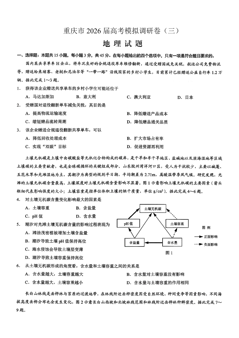 重庆市2026年普通高等学校招生全国统一考试康德调研(三)地理试题(含答案).pdf