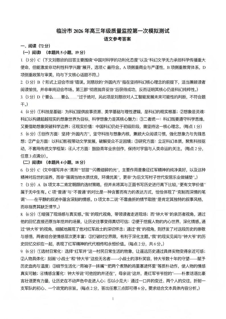 临汾市2026年高三年级质量监控第一次模拟测试 语文答案.pdf