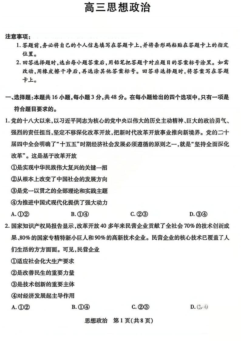 山西省、陕西省多校2026届高三下学期3月联考 政治.pdf