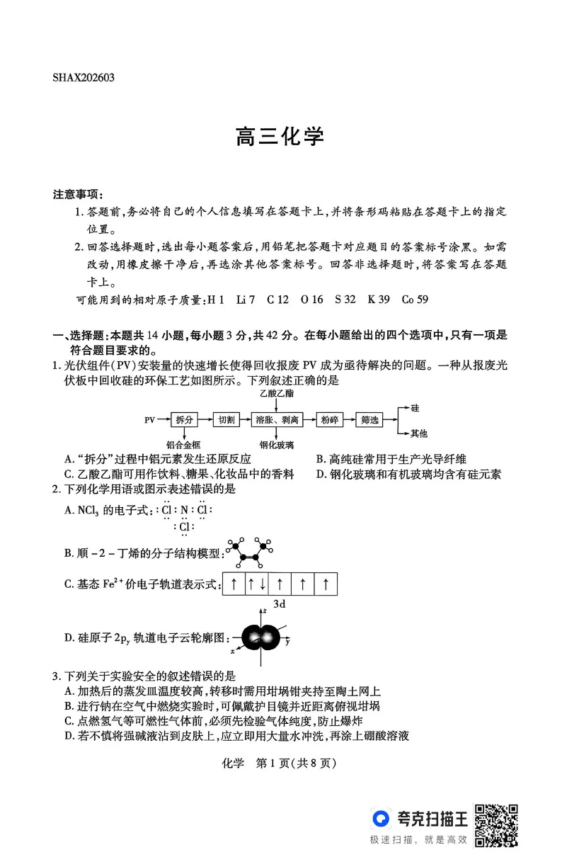 山西省、陕西省多校2026届高三下学期3月联考 化学.pdf