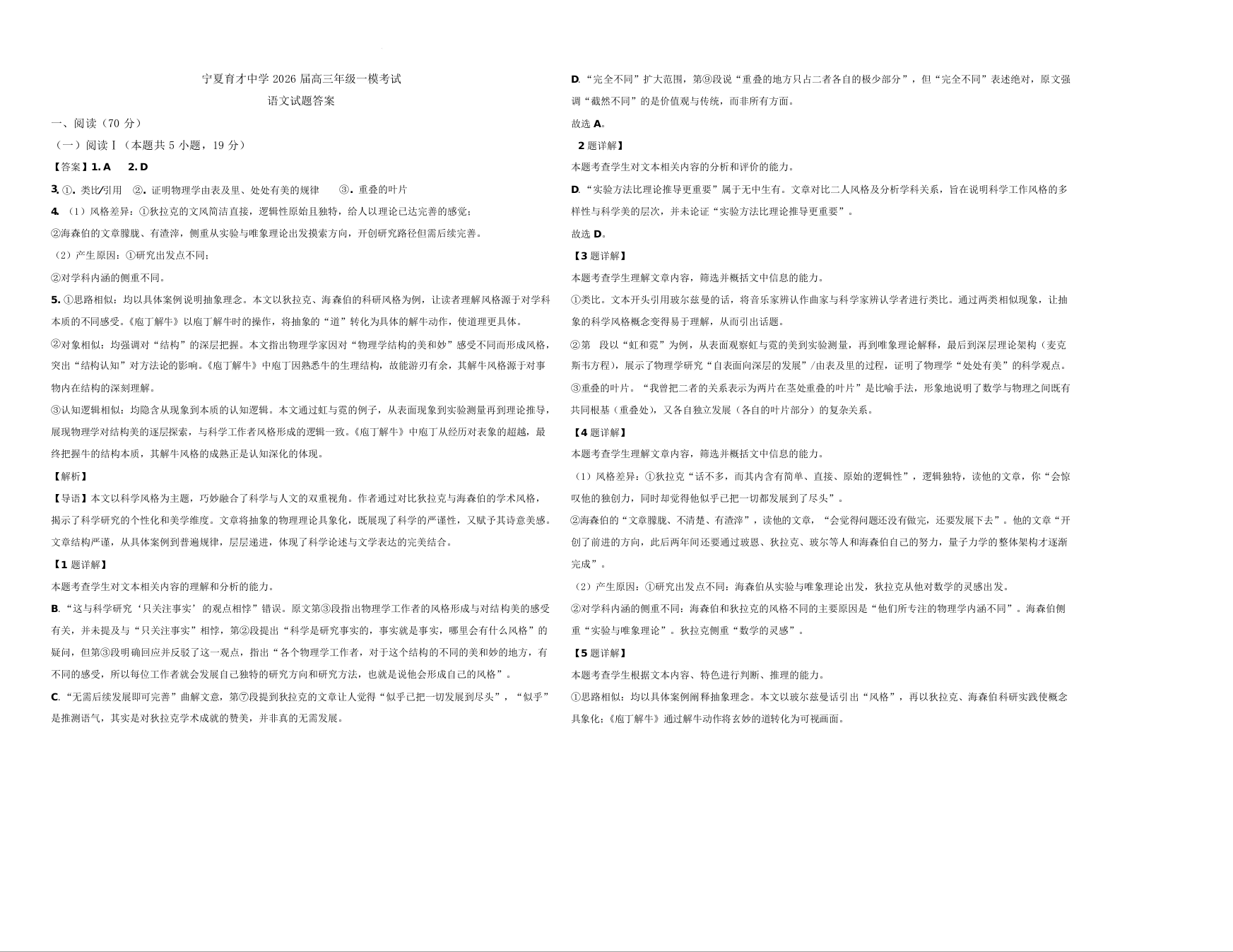 宁夏育才中学2026届高三年级一模考试 语文答案.docx