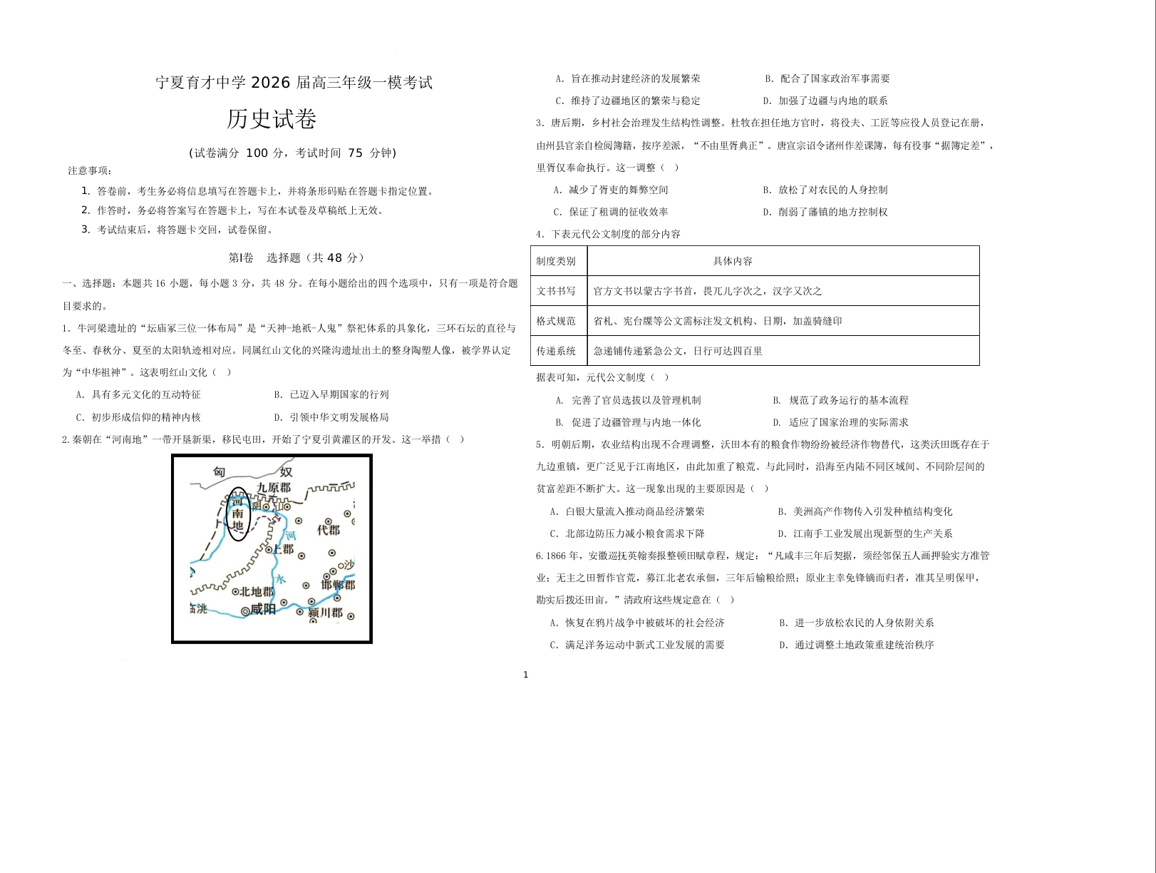 宁夏育才中学2026届高三年级一模考试 历史.docx