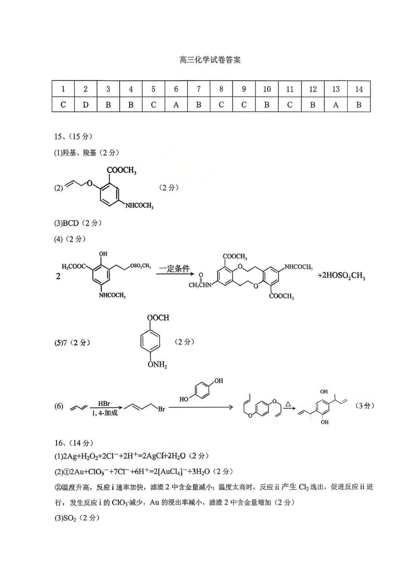 江西省五市十校协作体2026届高三年级3月第二次联考 化学答案.pdf