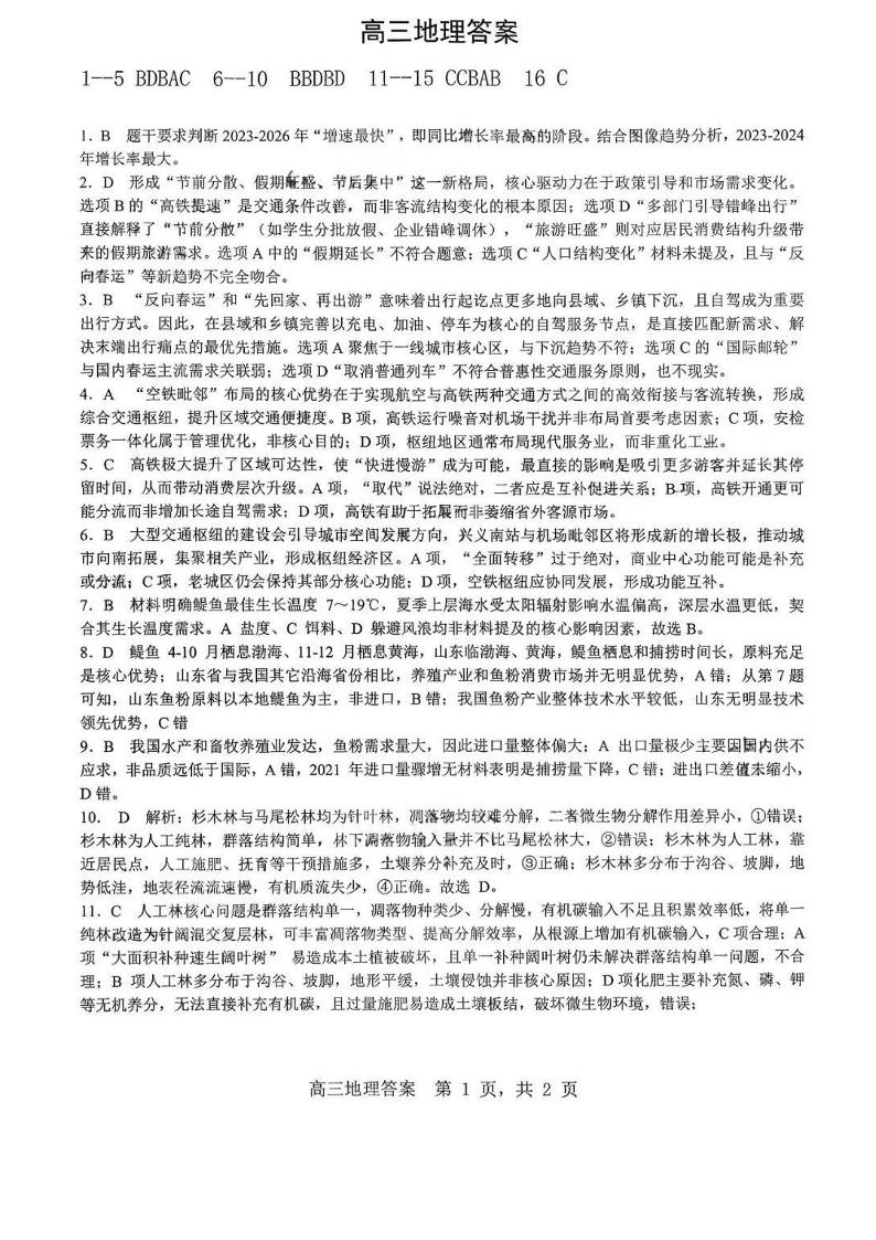 江西省五市十校协作体2026届高三年级3月第二次联考 地理答案.pdf