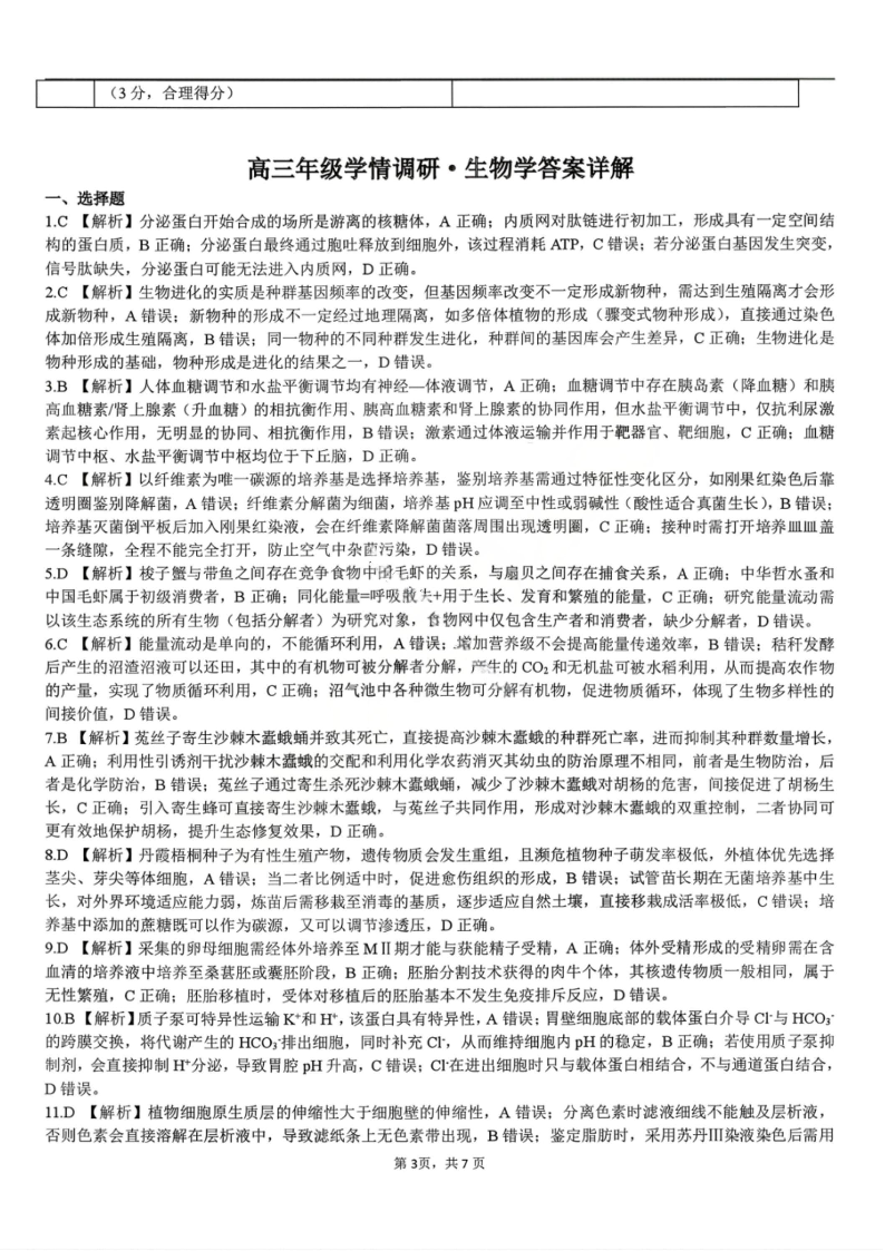 辽宁省点石联考2026届高三年级3月学情调研考试 生物答案.pdf