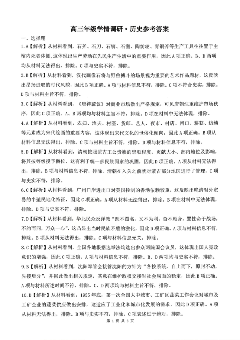 辽宁省点石联考2026届高三年级3月学情调研考试 历史答案.pdf