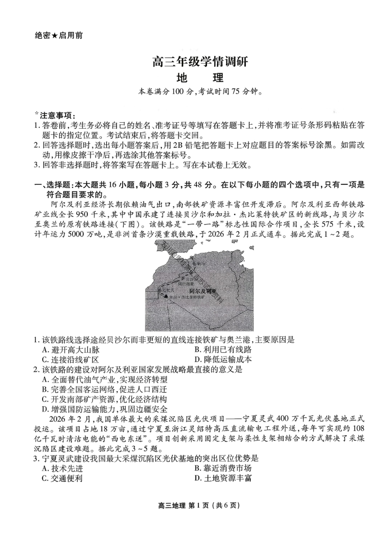 辽宁省点石联考2026届高三年级3月学情调研考试 地理.pdf