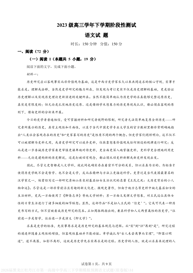 黑龙江牡丹江市第一高级中学2026届高三下学期阶段性测试 语文.pdf