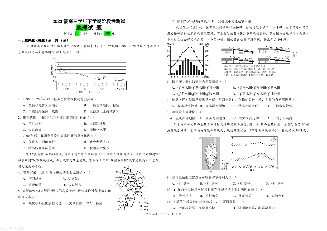 黑龙江牡丹江市第一高级中学2026届高三下学期阶段性测试 地理.pdf