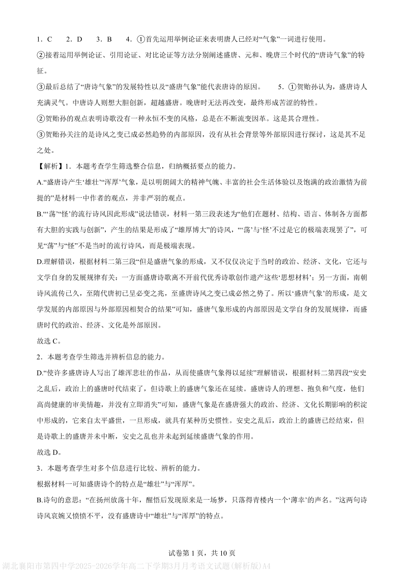 湖北省襄阳市第四中学2025-2026学年高二下学期3月阶段检测 语文答案.pdf