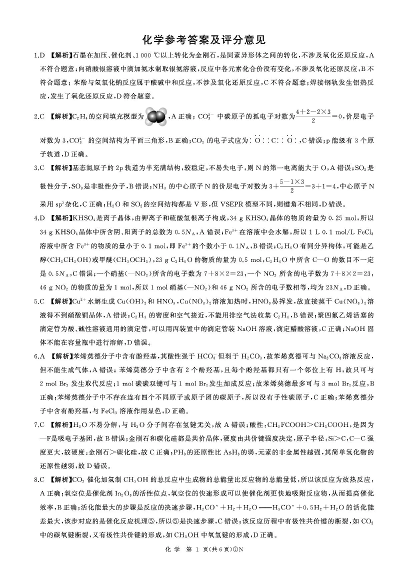 百师联盟2026届高三二轮复习联考(一)化学答案.pdf