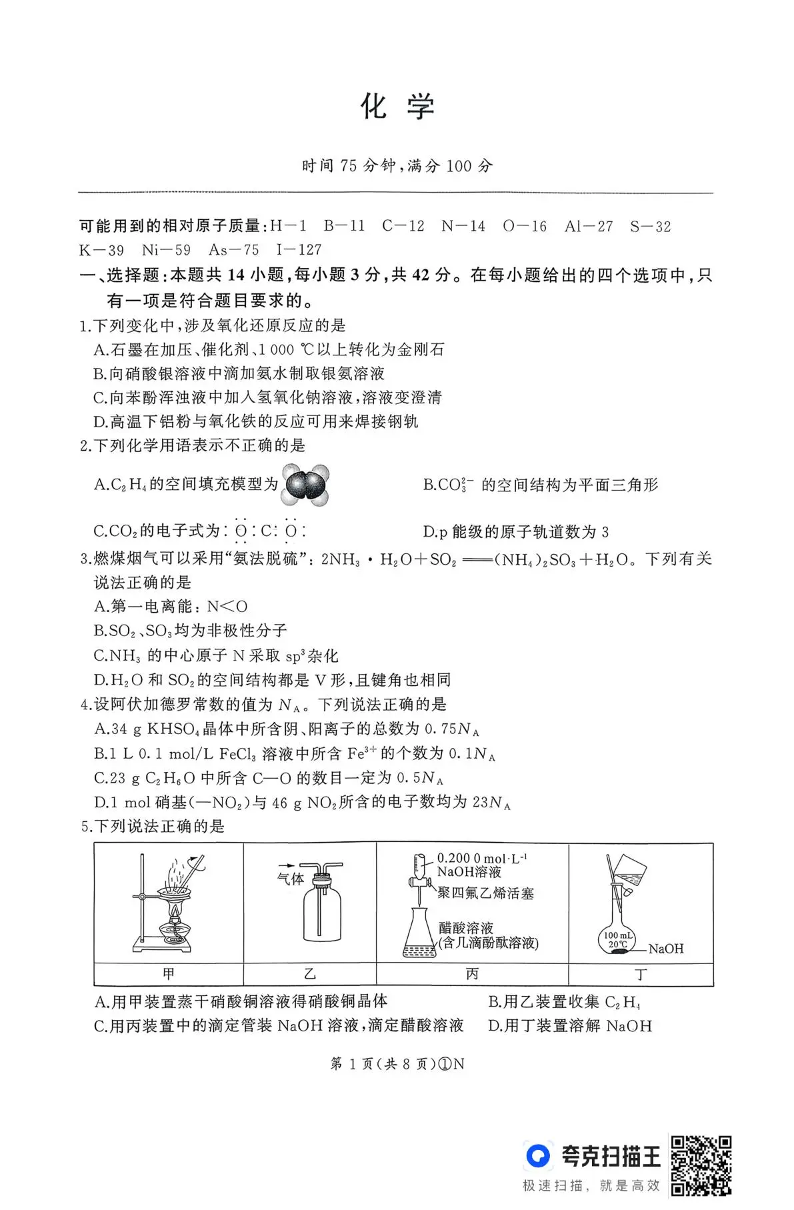 百师联盟2026届高三二轮复习联考(一)化学.pdf