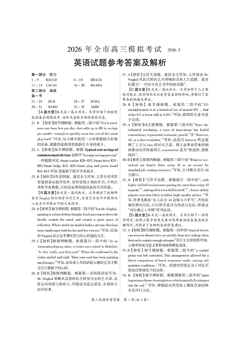 2026年全市高三模拟考试 英语答案.pdf