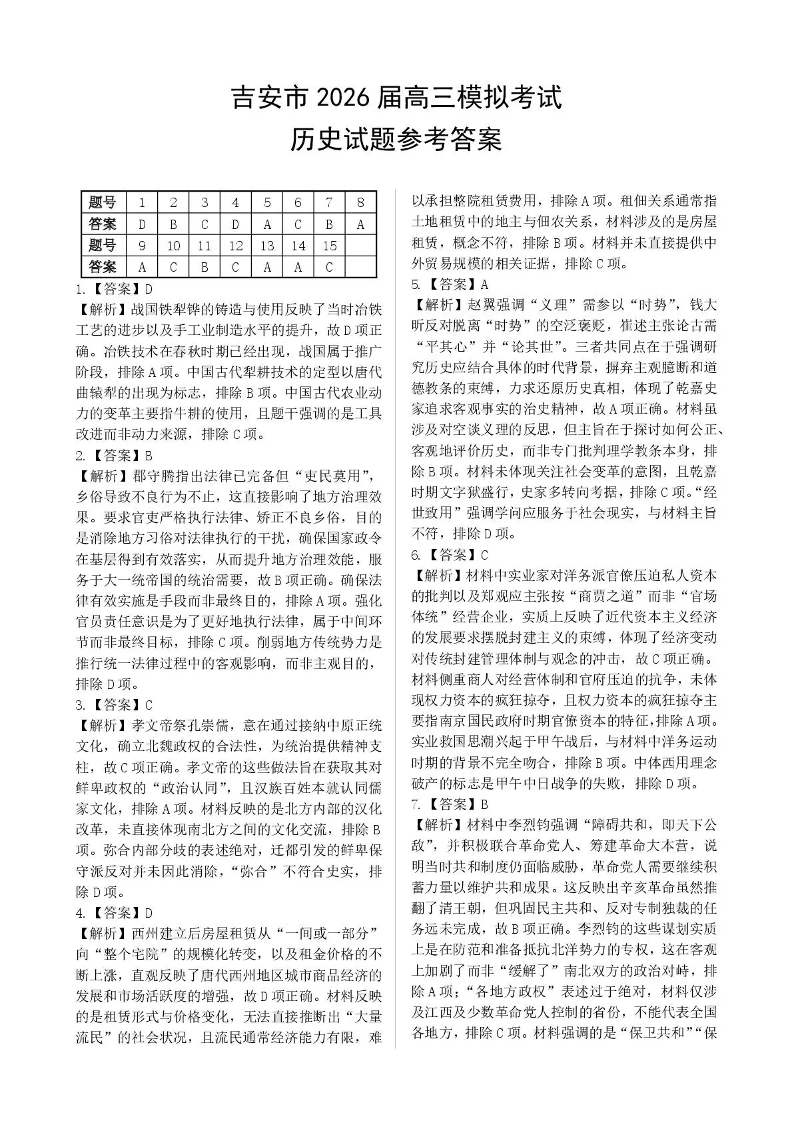 2026年全市高三模拟考试 历史答案.pdf