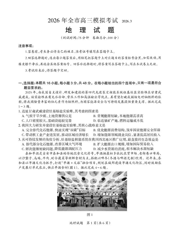 2026年全市高三模拟考试 地理.pdf
