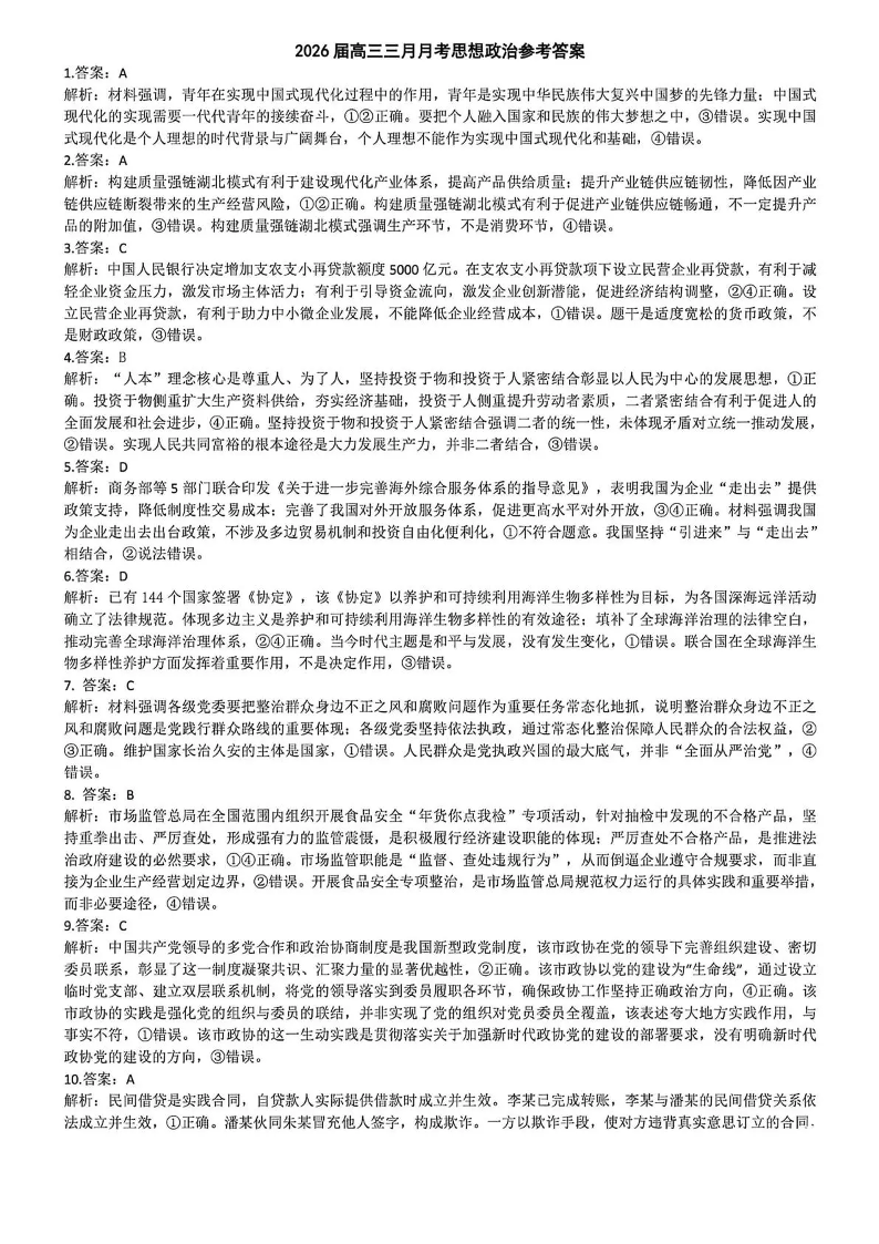湖北省2026届高三十一校第二次联考 政治答案.pdf
