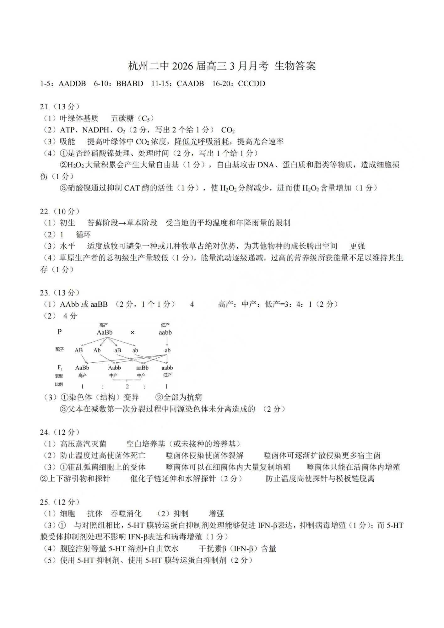 杭州二中2025学年第二学期高三三月份适应性考试 生物答案.pdf