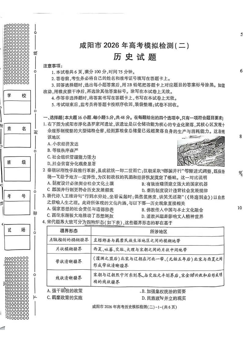 咸阳市2026年高考模拟检测(二)历史.pdf