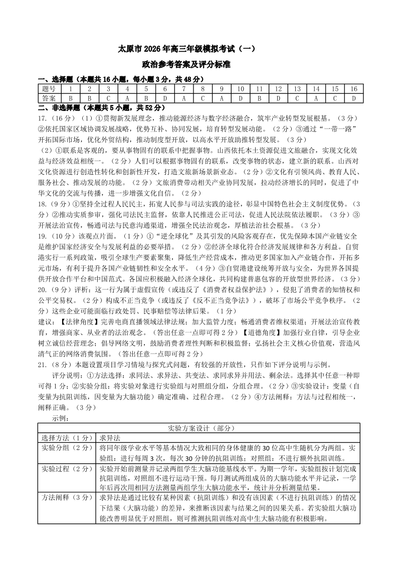 太原市2026年高三年级模拟考试(一)政治答案.pdf