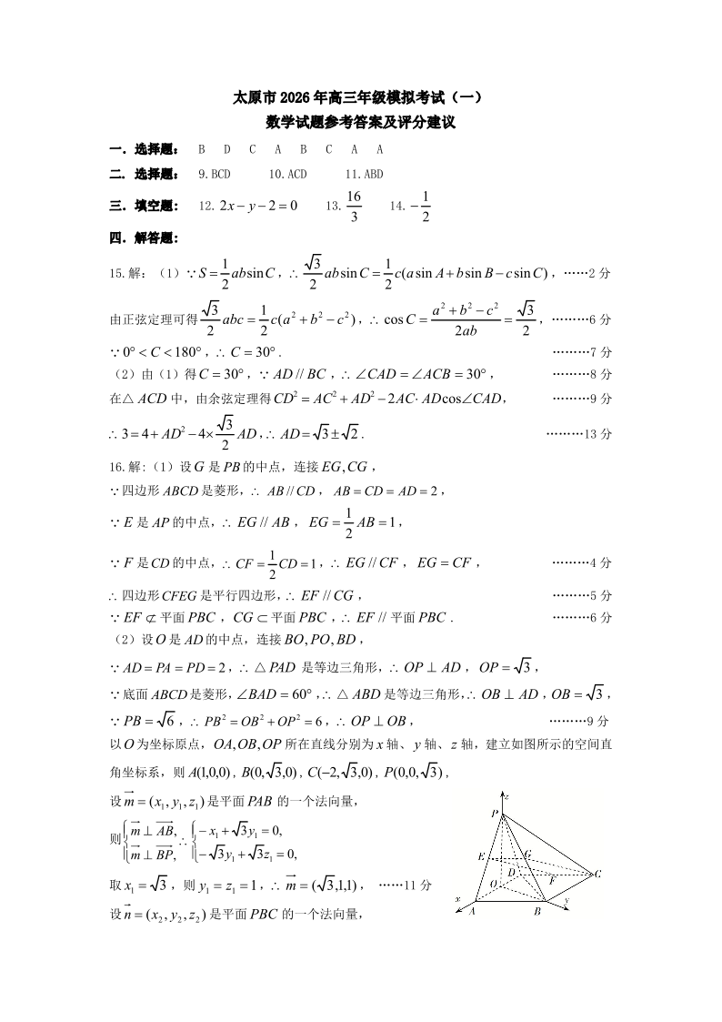 太原市2026年高三年级模拟考试(一)数学答案.pdf