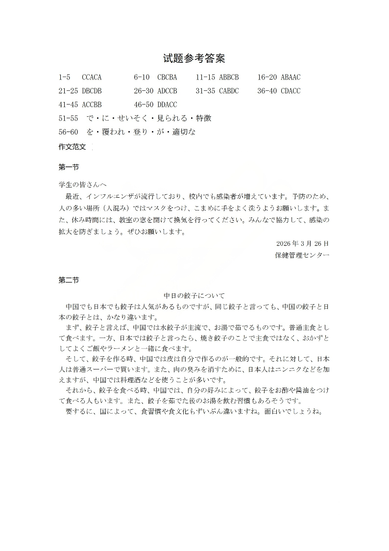 太原市2026年高三年级模拟考试(一)日语答案.pdf