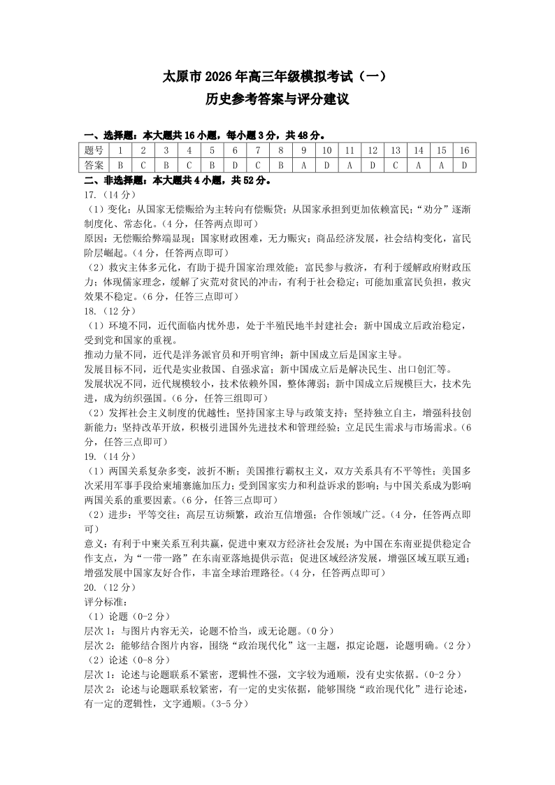 太原市2026年高三年级模拟考试(一)历史答案.pdf