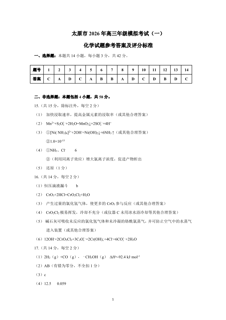太原市2026年高三年级模拟考试(一)化学答案.pdf