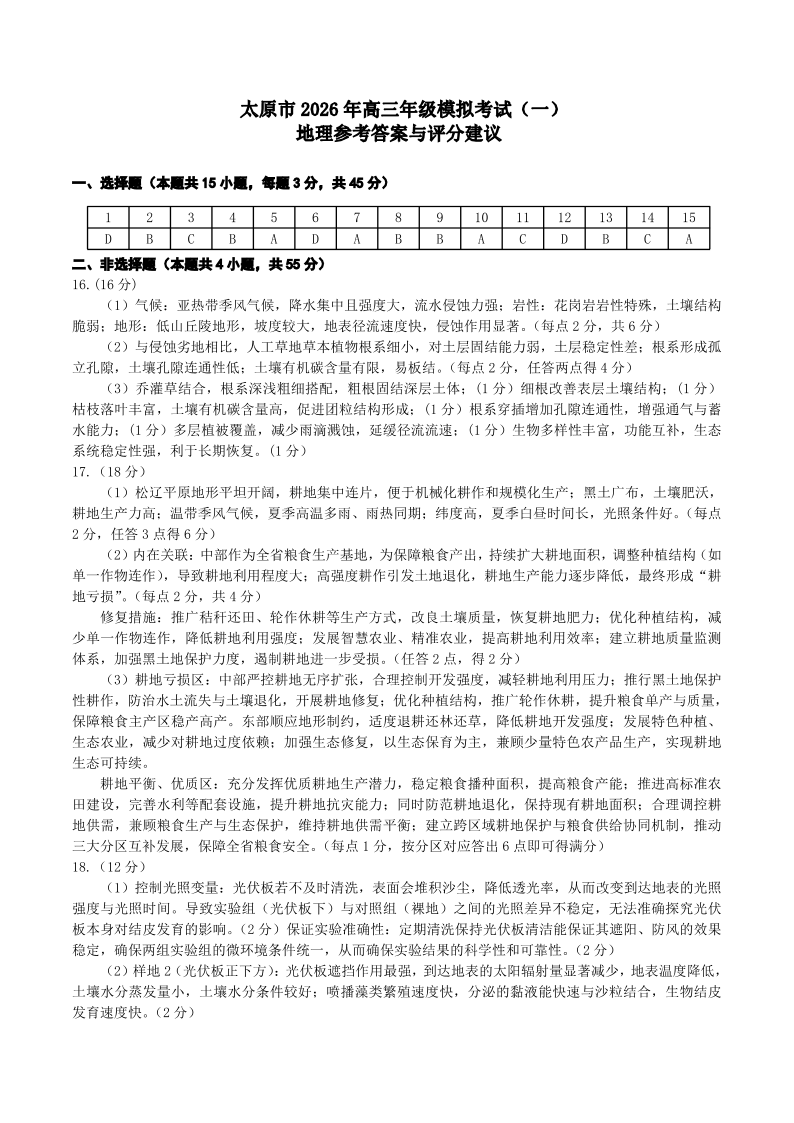 太原市2026年高三年级模拟考试(一)地理答案.pdf