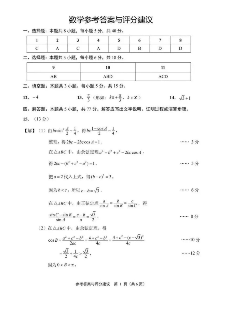 江苏省苏北七市2026届高三下学期第二次调研测试 数学答案.pdf
