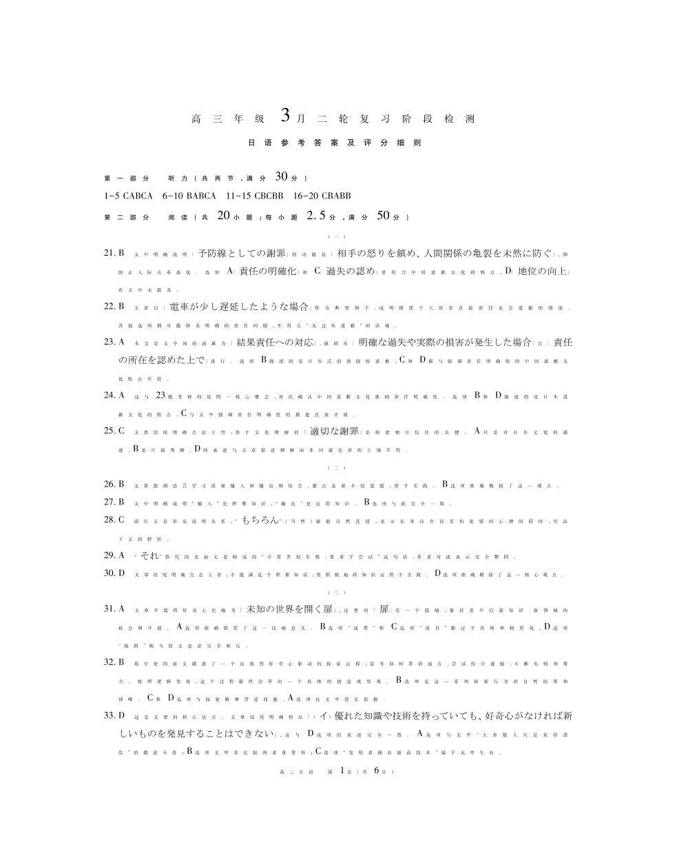 26届3月广东高三·日语答案.pdf