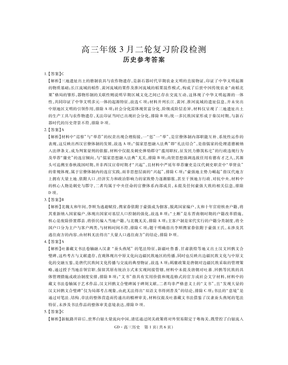 26届3月广东高三·历史答案.pdf