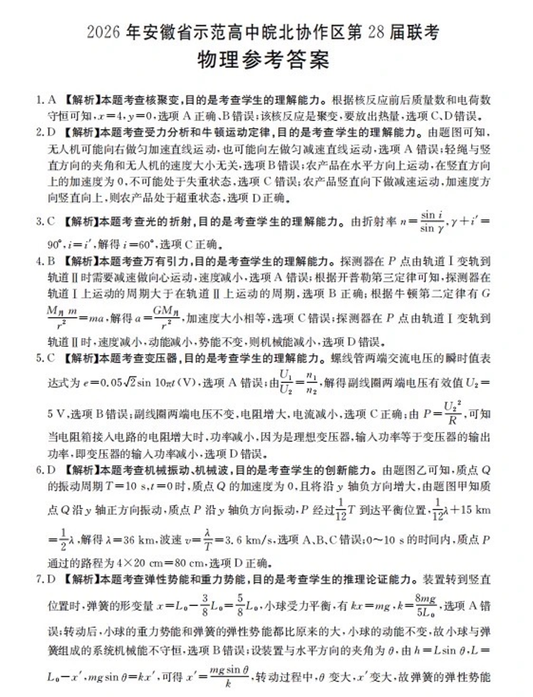 2026年安徽省示范高中皖北协作区第28届联考 物理答案.pdf