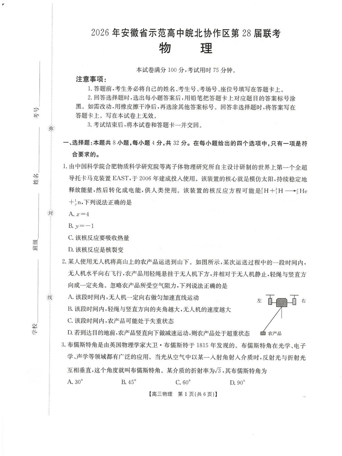 2026年安徽省示范高中皖北协作区第28届联考 物理.pdf
